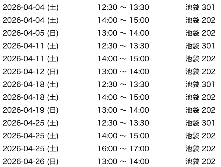 2026-03-28(土)14:00 – 15:00 池袋202